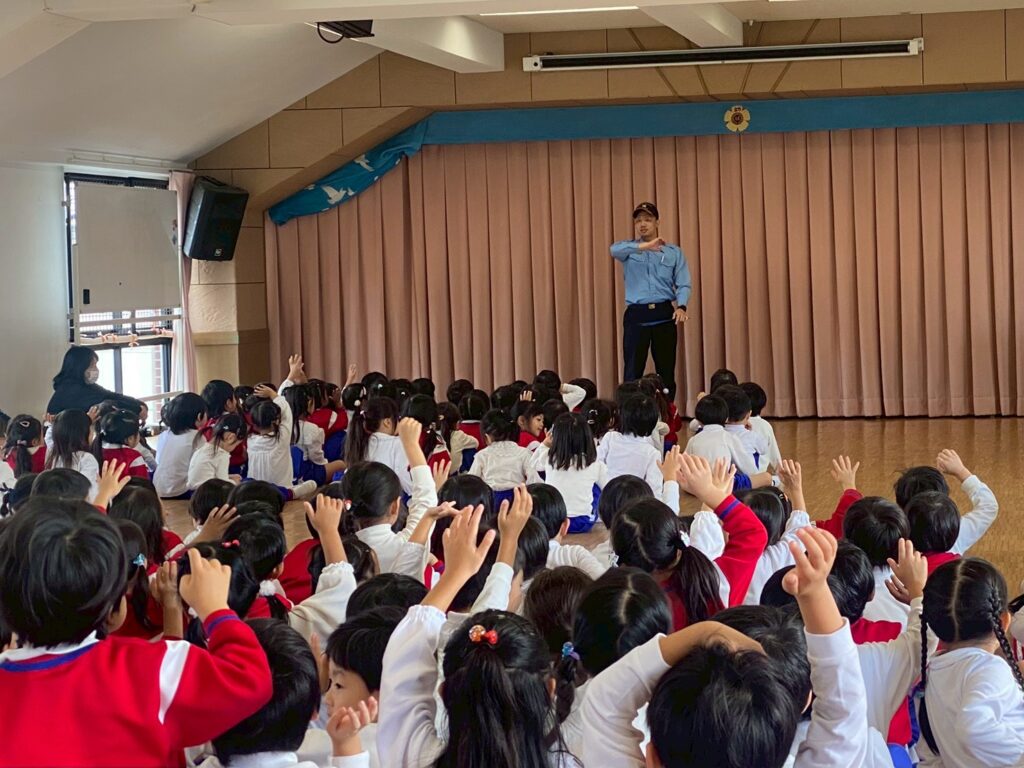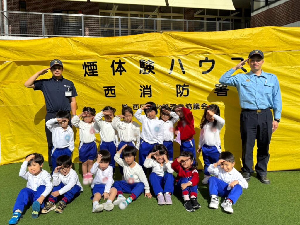 西消防署の方々のご指導の元、防火防災教室及び消防体験をしました。
