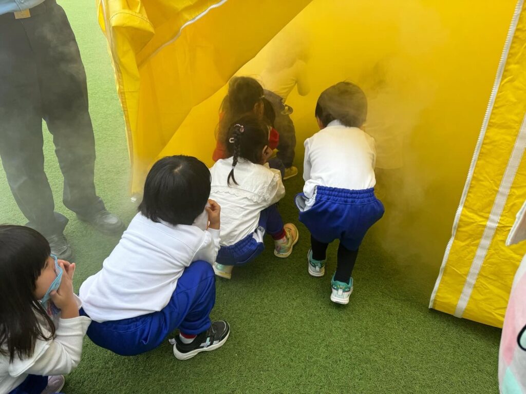 火事による煙の現場を体験しました。周りが煙で何も見えなくなる怖さもありましたが、その分、身の安全を守る方法をしっかりと覚え、行動することができました。なかなかできない貴重な体験でした。