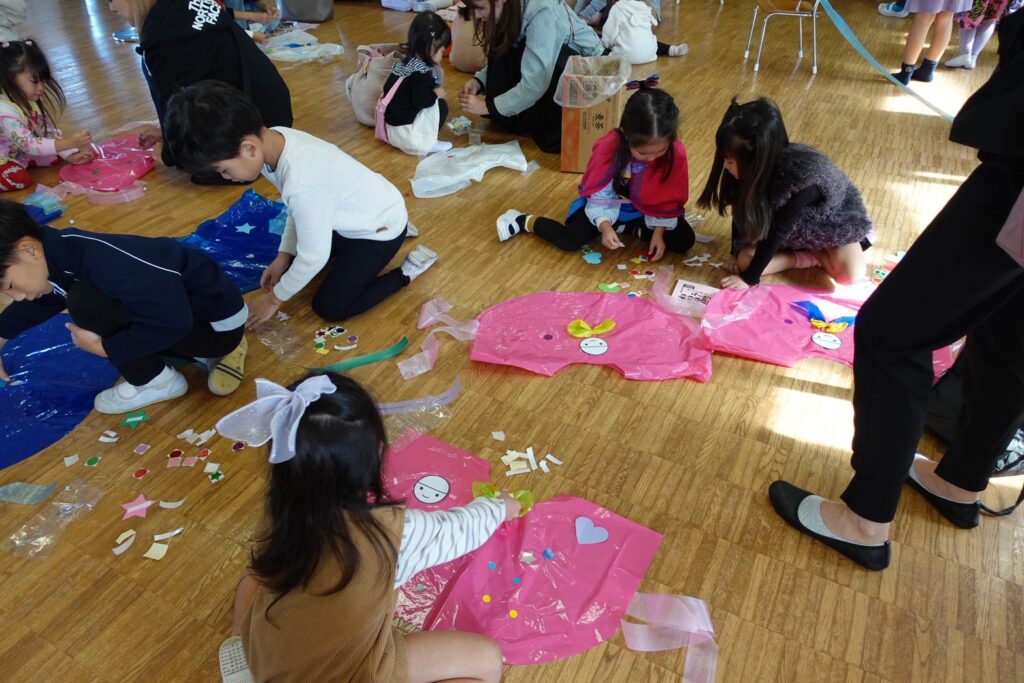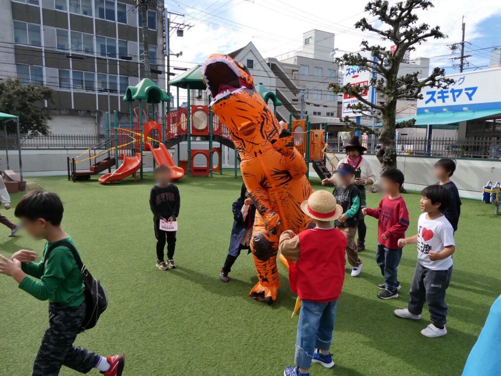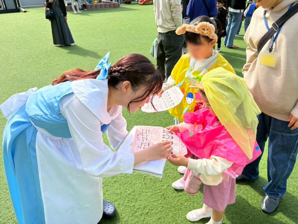迷路や魚釣りなど色々なゲームをしたり、自分だけのオリジナルポンチョを作ったり、フォトブースがあったり、みんなも大好きなイベントです。また今年は「先生クイズ」という先生を探してクイズに答えるという楽しい企画も。いつもとは雰囲気が違う先生たちに会えて、子どもたちもとっても嬉しそうでした。さらにキッチンカーでの食事販売も行いました。どのお店も美味しく、行列ができていました。
